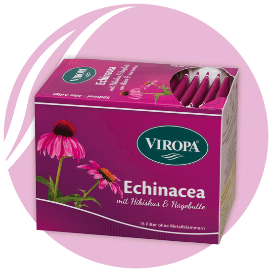 Echinacea ist eine bis zu 60 cm hoch werdende Staude und ist in Nordamerika beheimatet. Die dort lebenden indianischen Stämme haben schon vor langer Zeit ihre breitgefächerte Wirkung gekannt und dementsprechend angewandt. Besonders in der kalten Jahreszeit schmeckt mehrmals täglich eine Tasse frisch bereiteter Tee zwischen den Mahlzeiten vortrefflich.
